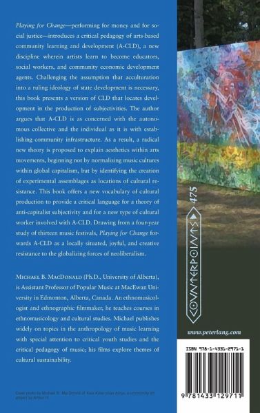 Playing for Change - performing for money and for social justice - introduces a critical pedagogy of arts-based community learning and development (A-CLD), a new discipline wherein artists learn to become educators, social workers, and community economic development agents. Challenging the assumption that acculturation into a ruling ideology of state development is necessary, this book presents a version of CLD that locates development in the production of subjectivities. The author argues that A-CLD is as concerned with the autonomous collective and the individual as it is with establishing community infrastructure. As a result, a radical new theory is proposed to explain aesthetics within arts movements, beginning not by normalizing music cultures within global capitalism, but by identifying the creation of experimental assemblages as locations of cultural resistance. This book offers a new vocabulary of cultural production to provide a critical language for a theory of anti-capitalist subjectivity and for a new type of cultural worker involved with A-CLD. Drawing from a four-year study of thirteen music festivals, Playing for Change forwards A-CLD as a locally situated, joyful, and creative resistance to the globalizing forces of neoliberalism.