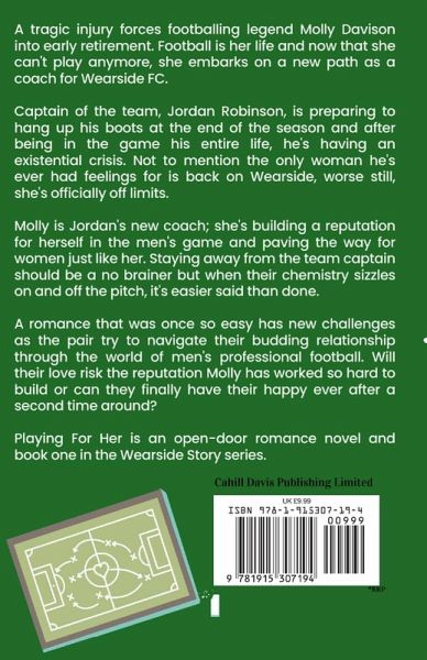 A tragic injury forces footballing legend Molly Davison into early retirement. Football is her life and now that she can't play anymore, she embarks on a new path as a coach for Wearside FC. Captain of the team, Jordan Robinson, is preparing to hang up his boots at the end of the season and after being in the game his entire life, he's having an existential crisis. Not to mention the only woman he's ever had feelings for is back on Wearside, worse still, she's officially off limits. Molly is Jordan's new coach; she's building a reputation for herself in the men's game and paving the way for women just like her. Staying away from the team captain should be a no brainer but when their chemistry sizzles on and off the pitch, it's easier said than done. A romance that was once so easy has new challenges as the pair try to navigate their budding relationship through the world of men's professional football. Will their love risk the reputation Molly has worked so hard to build or can they finally have their happy ever after a second time around? Playing For Her is an open-door romance novel and book 1 in the Wearside Story series.