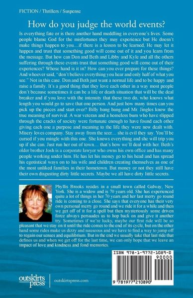 Is everything fate or is there another hand meddling in everyone's lives. Some people blame God for the misfortunes they may experience but He doesn't make things happen to you....if there is a lesson to be learned, He may let it happen and trust that something good will come out of it and you learn from the message. But how can Don and Beth and Libby and Kyle and all the others suffering through these events trust that something good will come out of their experiences? Whose hand is it in? How can you ever prepare for these things? And whoever said, "don't believe everything you hear and only half of what you see." Not in this case. Don and Beth just want a normal life and to be happy and raise a family. It's a good thing that they love each other in a way most people don't because sometimes it can be a life or death situation that will be the deal breaker and if you love with the intensity that these two do, who knows what length you would go to save that one person. And just how many times can you pick up the pieces and start over? Billy bang bang and Mr. Jingles know the true meaning of survival. A war veteran and a homeless bum who have slipped through the cracks of society were fortunate enough to have found each other giving each one a purpose and meaning to the life they were now dealt with. Misery loves company. Stay away from the seer.... she is evil they say. You'll be cursed if you mingle with this one. She knows everything and she will trip you up if she can. Just run her out of town.... that's how we'll deal with her. Beth's older brother Josh is a corporate lawyer who owns his own office and has many people working under him. He has let his money go to his head and has spread his egotistical ways on to his wife and children creating themselves as one of the most unliked families in their hometown. But money or not they still have their own disgusting dirty little secrets. Maybe we all have dirty little secrets.