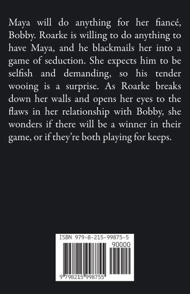 Maya will do anything for her fiancé, Bobby. Roarke is willing to do anything to have Maya, and he blackmails her into a game of seduction. She expects him to be selfish and demanding, so his tender wooing is a surprise. As Roarke breaks down her walls and opens her eyes to the flaws in her relationship with Bobby, she wonders if there will be a winner in their game, or if they're both playing for keeps. This is a complete standalone novel with no cliffhangers.