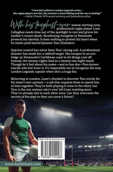 Book Two of the London Legends Rugby Club With his toughest-ever season starting soon, professional rugby player Liam Callaghan needs time out of the spotlight to rest and grieve his mother's recent death. Vacationing incognito in Venezuela protects his identity. It does nothing to protect his heart when he meets pink-haired dynamo Tess Chambers. Impulse control has never been Tess' strong suit. A professional disaster has made her a tabloid target. She escapes to an eco-lodge on Venezuela's Caribbean coast to let things cool off. Instead, the steamy nights lead to a steamy one-night stand. Though he's lied about his name-and so has she-Tess knows exactly who her lover is. It's impossible not to recognize the sexy London Legends captain when she's a huge fan. Returning to London, Liam's shocked to discover Tess works for his team's new sponsor-a job that requires them to spend lots of time together. They're both playing it close to the chest, but Tess is the one woman who's ever left Liam wanting more. They've already lied to each other once. Can they overcome the secrets of the past so they can score a future?