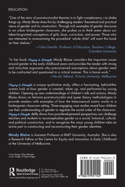 Chapter 1 Feminist Poststructuralism and Queer Theory: What Do They Offer?; Chapter 2 Researching With Children in the Early Childhood Classroom; Chapter 3 Uncovering the Heterosexual Matrix; Chapter 4 Alan: Power Broker; Chapter 5 Madison: a Risk Taker; Chapter 6 Penny: The "Good" Girl; Chapter 7 Rethinking Gender and Early Childhood Teaching;