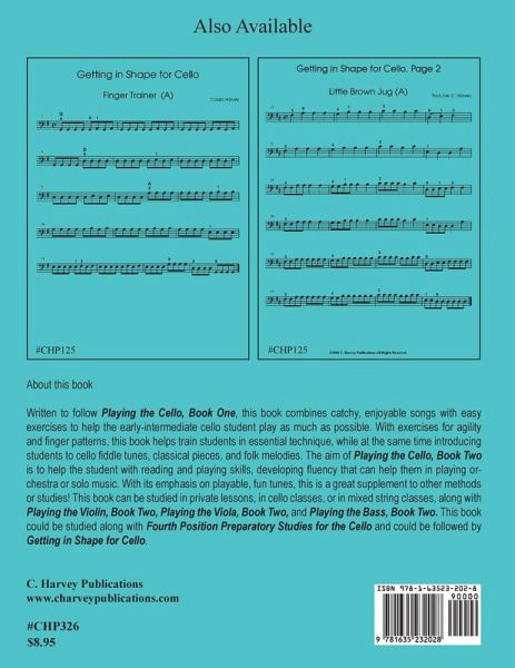 Playing the Cello, Book Two combines catchy, enjoyable songs with easy exercises to help the early-intermediate cello student play as much as possible. With exercises for agility and finger patterns, this book helps train students in essential technique, while at the same time introducing students to cello fiddle tunes, classical pieces, and folk melodies. The aim of Playing the Cello, Book Two is to help the student with reading and playing skills, developing fluency that can help them in playing orchestra or solo music. With its emphasis on playable, fun tunes, this is a great supplement to other methods or studies! With studies in first and fourth positions, as well as extended first position, this is a useful introduction to intermediate skills on the cello. This book can be studied in private lessons, in cello classes, or in mixed string classes, along with Playing the Violin, Book Two and Playing the Viola, Book Two. This book could be played after Playing the Cello, Book One and followed by Getting in Shape for Cello.