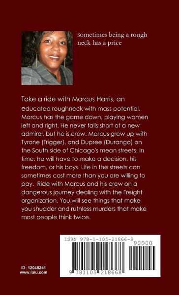 Take a ride with Marcus Harris, an educated roughneck with mass potential. Marcus has the game down, playing women left and right. He never falls short of a new admirer, but he is crew. Marcus grew up with Tyrone (Trigger), and Dupree (Durango) on the South side of Chicago's mean streets. In time, he will have to make a decision, his freedom, or his boys. Life in the streets can sometimes cost more than you are willing to pay. Ride with Marcus and his crew on a dangerous journey dealing with the Freight organization. You will see things that make you shudder and ruthless murders that make most people think twice.