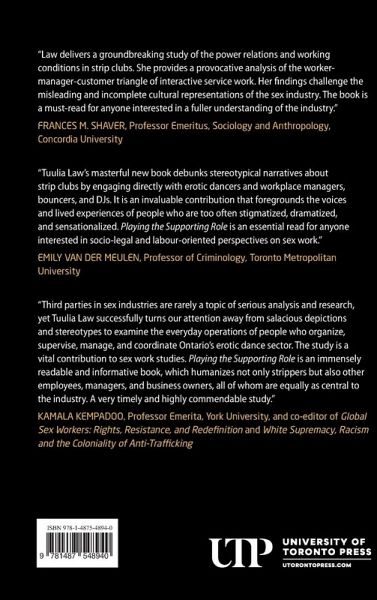 Playing the Supporting Role draws on interviews with strippers and strip club management to bring to life the daily routines, personalities, conflicts, and challenges of managing and working in the erotic dance sector.