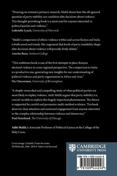 List of Figures List of Tables List of Abbreviations Acknowledgements 1. Parties and political violence 2. A theory of party instability and political violence 3. The development of divergent parties and party systems in Kenya and India 4. Party instability and political violence in Kenya 5. Party fragility and subnational patterns of violence in Kenya's rift valley and coast regions 6. Party stabilization, declining riot violence, and new modalities of political conflict in India 7. Party politics and subnational trajectories of riot violence in India's Hyderabad and Meerut cities 8. Party instability and political violence: comparative insights from Ghana and Turkey 9. Conclusion Appendix A. National and subnational correlations between replacement volatility and alternative measures of party instability Appendix B. Elite interviews Appendix C. The development of civil society in Kenya and India References Datasets.