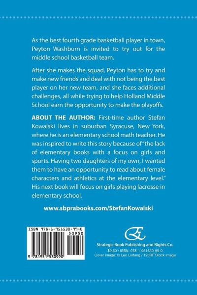 As the best fourth grade basketball player in town, Peyton Washburn is invited to try out for the middle school basketball team. After she makes the squad, Peyton has to try and make new friends and deal with not being the best player on her new team, and she faces additional challenges, all while trying to help Holland Middle School earn the opportunity to make the playoffs. About the Author: First-time author Stefan Kowalski lives in suburban Syracuse, New York, where he is an elementary school math teacher. He was inspired to write this story because of "the lack of elementary books with a focus on girls and sports. Having two daughters of my own, I wanted them to have an opportunity to read about female characters and athletics at the elementary level." His next book will focus on girls playing lacrosse in elementary school.