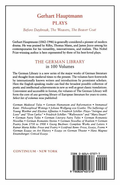 Gerhart Hauptmann (1862-1946) is generally considered a pioneer of modern drama. He was praised by Rilke, Thomas Mann, and James Joyce among his contemporaries for his versatility, innovativeness, and realism. This Nobel Prize-winning author is here represented by three of his best-loved plays.