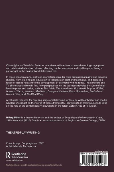 Playwrights on Television features interviews with writers of award-winning stage plays and celebrated television shows reflecting on the successes and challenges of being a playwright in the post-network television era. In these conversations, eighteen dramatists consider their professional paths and creative choices, from training and education to thoughts on craft and technique, and discuss a range of issues relevant to the development of dramatic writing today. Theatergoers and TV aficionados alike will find new perspectives on the journeys traveled by some of their favorite plays and series, such as The Affair, The Americans, Boardwalk Empire, GLOW, House of Cards, Insecure, Mad Men, Orange Is the New Black, Shameless, She's Gotta Have It, Vida, and The West Wing. A valuable resource for aspiring stage and television writers, as well as theater and media scholars investigating the works of these dramatists, Playwrights on Television sheds light on the role of the contemporary playwright in the latest Golden Age of television.
