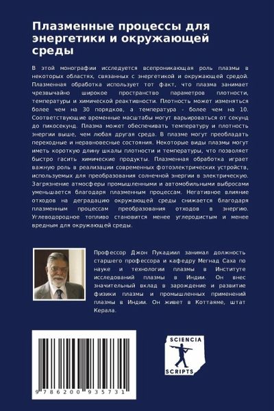 V ätoj monografii issleduetsq wsepronikaüschaq rol' plazmy w nekotoryh oblastqh, swqzannyh s änergetikoj i okruzhaüschej sredoj. Plazmennaq obrabotka ispol'zuet tot fakt, chto plazma zanimaet chrezwychajno shirokoe prostranstwo parametrow plotnosti, temperatury i himicheskoj reaktiwnosti. Plotnost' mozhet izmenqt'sq bolee chem na 30 porqdkow, a temperatura - bolee chem na 10. Sootwetstwuüschie wremennye masshtaby mogut war'irowat'sq ot sekund do pikosekund. Plazma mozhet obespechiwat' temperaturu i plotnost' änergii wyshe, chem lübaq drugaq sreda. V plazme mogut preobladat' perehodnye i nerawnowesnye sostoqniq. Nekotorye widy plazmy mogut imet' korotkuü dlinu shkaly plotnosti i temperatury, chto pozwolqet bystro gasit' himicheskie produkty. Plazmennaq obrabotka igraet wazhnuü rol' w realizacii sowremennyh fotoälektricheskih ustrojstw, ispol'zuemyh dlq preobrazowaniq solnechnoj änergii w älektricheskuü. Zagrqznenie atmosfery promyshlennymi i awtomobil'nymi wybrosami umen'shaetsq blagodarq plazmennym processam. Negatiwnoe wliqnie othodow na degradaciü okruzhaüschej sredy snizhaetsq blagodarq plazmennym processam preobrazowaniq othodow w änergiü. Uglewodorodnoe topliwo stanowitsq menee uglerodistym i menee wrednym dlq okruzhaüschej sredy.