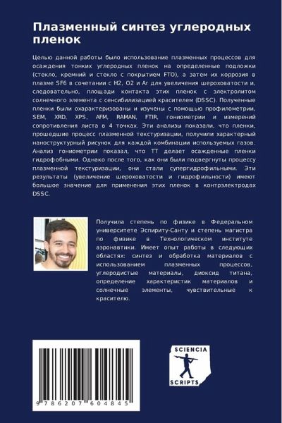 Cel'ü dannoj raboty bylo ispol'zowanie plazmennyh processow dlq osazhdeniq tonkih uglerodnyh plenok na opredelennye podlozhki (steklo, kremnij i steklo s pokrytiem FTO), a zatem ih korroziq w plazme SF6 w sochetanii s H2, O2 i Ar dlq uwelicheniq sherohowatosti i, sledowatel'no, ploschadi kontakta ätih plenok s älektrolitom solnechnogo älementa s sensibilizaciej krasitelem (DSSC). Poluchennye plenki byli oharakterizowany i izucheny s pomosch'ü profilometrii, SEM, XRD, XPS, AFM, RAMAN, FTIR, goniometrii i izmerenij soprotiwleniq lista w 4 tochkah. Jeti analizy pokazali, chto plenki, proshedshie process plazmennoj texturizacii, poluchili harakternyj nanostrukturnyj risunok dlq kazhdoj kombinacii ispol'zuemyh gazow. Analiz goniometrii pokazal, chto TT delaet osazhdennye plenki gidrofobnymi. Odnako posle togo, kak oni byli podwergnuty processu plazmennoj texturizacii, oni stali supergidrofil'nymi. Jeti rezul'taty (uwelichenie sherohowatosti i gidrofil'nosti) imeüt bol'shoe znachenie dlq primeneniq ätih plenok w konträlektrodah DSSC.