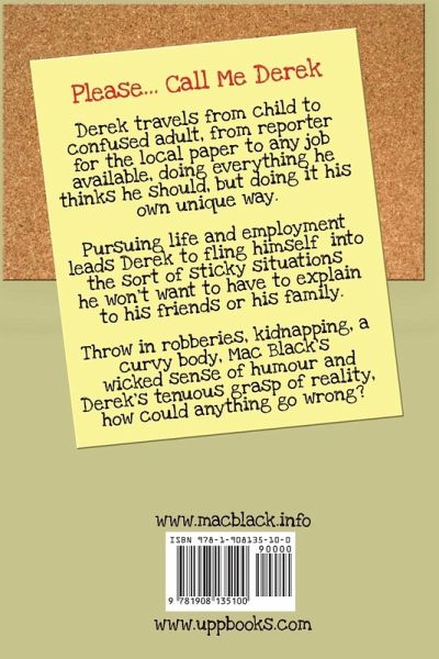 Derek travels from child to confused adult, from reporter for the local paper to any job available, doing everything he thinks he should, but doing it his way. Pursuing life and employment leads Derek to fling himself into the sort of sticky situations he won't want to have to explain to his friends or his family. With determination, gritting his teeth, doing everything for the best, how could anything go wrong. With more Derek books coming soon, why not check the publisher's website www.uppublications.ltd.uk for more information or follow Mac on www.macblack.info. Current titles by Mac Black Please... Call me Derek Derek's in Trouble Derek's Revenge