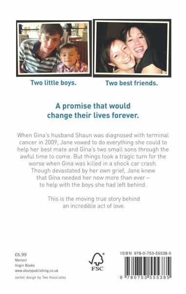 'I'm glad I could do her this one last favour. If it had been the other way round I know Gina would have done the same for me.' Jane and Gina were the best of friends. When Gina's husband Shaun was diagnosed with terminal cancer in 2009 Jane vowed to do everything she could to help her best mate and her two small sons through the awful time to come. But things were about to take a tragic turn for the worse. In 2010 Gina was killed in a shock car crash. Though devastated by her own grief Jane knew that Gina needed her now more than ever - to help with the boys she had left behind. And after cancer claimed Shaun's life Jane stepped in to care for the two orphans becoming the mother her best friend could no longer be. This is the moving true story behind an incredible act of love.