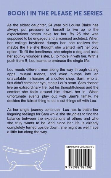 ¿¿Contemporary Romance Novel¿¿ As the eldest daughter, 24 year old Louisa Blake has always put pressure on herself to live up to the expectations others have for her. By 25 she was supposed to be engaged and a licensed architect. When her college boyfriend dumps her, she realizes that maybe the life she thought she wanted isn't her only option. To fill the loneliness, she adopts a dog and asks her spunky younger sister, B, to move in with her. With a push from B, Lou learns to embrace the single life. Lou meets different men along the way through dating apps, mutual friends, and even bumps into an unavailable millionaire at a coffee shop. Sam, who at first didn't catch her eye, steals Lou's heart. Sam doesn't live an extraordinary life, but his thoughtfulness and the comfort she feels around him draws her in. When unfortunate events play out with Sam's family, he decides the fairest thing to do is cut things off with Lou. As her single journey continues, Lou has to battle her lingering feelings for Sam while she struggles to find the balance between the expectations of others and who she truly wants to be. And since her life is already completely turned upside down, she might as well have a little fun along the way. ¿Dual POV ¿Book 1 of the Please Me series ¿Set in Minneapolis, MN ¿Spicy (18+)