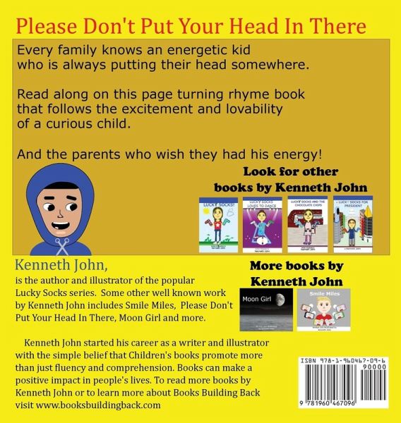Every family knows an energetic kid who is always putting their head somewhere. Read along on this page turning rhyme book that follows the excitement and lovability of a curious child and the parents who wish they had his energy!