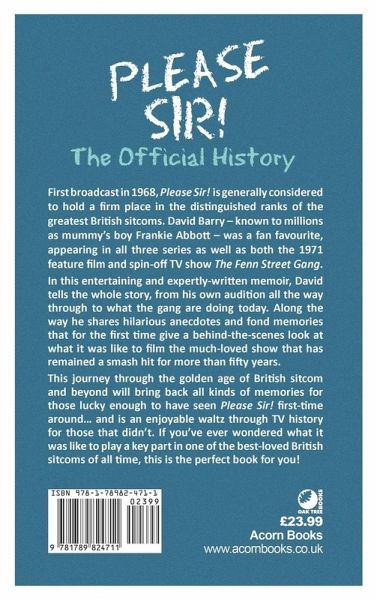 First broadcast in 1968, Please Sir! is generally considered to hold a firm place in the distinguished ranks of the greatest British sitcoms. David Barry - known to millions as mummy's boy Frankie Abbott - was a fan favourite, appearing in all three series as well as both the 1971 feature film and spin-off TV show The Fenn Street Gang. In this entertaining and expertly-written memoir, David tells the whole story, from his own audition all the way through to what the gang are doing today. Along the way he shares hilarious anecdotes and fond memories that for the first time give a behind-the-scenes look at what it was like to film the much-loved show that has remained a smash hit for more than fifty years. This journey through the golden age of British sitcom and beyond will bring back all kinds of memories for those lucky enough to have seen Please Sir! first-time around... and is an enjoyable waltz through TV history for those that didn't. If you've ever wondered what it was like to play a key part in one of the best-loved British sitcoms of all time, this is the perfect book for you!