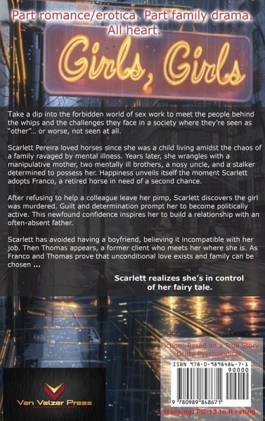 Scarlett's life had been anything but easy: raised in a family torn apart by mental illness, burdened with a mother who never wanted her, and haunted by a stalker who wouldn't leave her alone. Her only dream? To rescue horses, a dream she finally began to live when she adopted Marco, a hospice horse who offered her a glimpse of true happiness. But as a sex worker navigating a dangerous world, Scarlett's journey was far from over. Following the murder of a fellow sex worker, Scarlett became politically active on behalf of sex worker rights. Her newfound confidence spurred her to build a relationship with an often-absent father, only to learn that he had terminal cancer. Scarlett had always avoided having a boyfriend, believing it incompatible with her job. But then Thomas appeared, a former client who met her where she was. As Marco and Thomas proved that unconditional love existed and family can be chosen, Scarlett created a new life for herself. As Scarlett fought for herself, her horses, and her newfound family, she discovered that sometimes, the best kind of fairytale was the one you never saw coming. Would Scarlett find the courage to claim the happily-ever-after she didn't know she wanted? For fans of stories about resilience, unexpected love and the strength of chosen family.