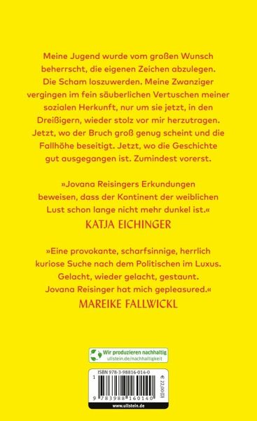 Reisinger schreibt über ihre eigene Beziehung zu Luxus und über den gesellschaftlichen Umgang mit allem, was Vergnügen bringt. Wer darf überhaupt genießen? Und wie genießt man 'richtig'? Selina Jüngling emotion 20241201