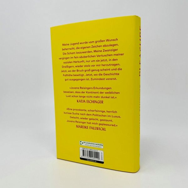 PLEASURE ist eine atemberaubend eloquente Tour de Force durch die Luxus-Triade Schlaf (meterlange Hotelbett-Laken!), Nahrung (Schlemmermaus!) und Kleidung (Dior, aber fake!). Anhand von aufschlussreichen Anekdoten aus der Kunstwelt stellt Jovana Reisinger die verdeckten Normen eines vermeintlich liberalen Milieus, bricht eine Lanze für den Kitsch, für die Völlerei und das Rumliegen. Das Bekenntnis zu PLEASURE ist nicht nur ein politisches Signal, sondern auch ein Weg zu individueller Freiheit.
