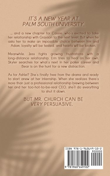 It's a new year at Palm South University, and a new chapter for Cassie - who's excited to take her relationship with Grayson to the next level. But when he asks her to make an impossible choice between him and Adam, loyalty will be tested, and hearts will be broken. Meanwhile, Jess fights growing frustrations with a long-distance relationship, Erin tries to heal on her own, Skyler searches for what's next in her poker career and Bear is on the hunt for a new distraction. As for Ashlei? She's finally free from the drama and ready to start anew at her internship. When she realizes there's more than just a professional relationship brewing between her and her too-hot-to-be-real CEO, she'll do everything to shut it down. But Mr. Church can be very persuasive.