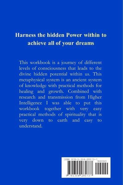 This workbook is a journey of different levels of consciousness that leads to the divine hidden potential within us. This metaphysical system is an ancient system of knowledge with practical methods for healing and growth. Combined with research and transmission from Higher Intelligence I was able to put this workbook together with very easy practical methods of spirituality that is very down to earth and easy to understand.