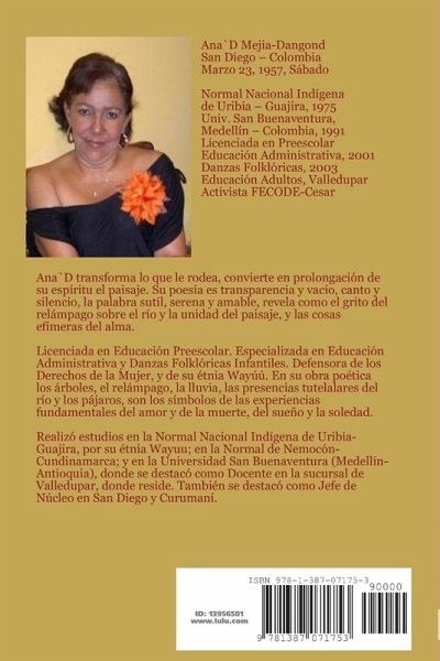 Poemas de Ana`D Mejía-Dangond donde transforma lo que le rodea, convierte en prolongación de su espíritu el paisaje. Su poesía es transparencia y vacío, canto y silencio, la palabra sutil, serena y amable, revela como el grito del relámpago sobre el río y la unidad del paisaje, y las cosas efímeras del alma.