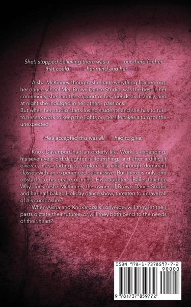 She's stopped believing there was a Dom out there for her that could match her mind and her kinks. Aisha McKinney thought she had everything figured out: her dance school Mrs. Brown Dance Studio, was the best in her community, she had the support of her friends and family, and at night she indulged in her other...passions. But when her studio starts losing students and she has to turn to her sex work to keep the lights on, her life takes a turn for the unexpected. He's accepted this was all life had to give. Knox Davenport had an orderly life. Work is expanding, his seven-year-old daughter is flourishing, and after a difficult divorce, he's starting to explore his kink through dominant classes with an experienced submissive. But there is only one obstacle to his peace of mind. His daughter's Ballet teacher. Why does Aisha McKinney, the owner of Brown Dance Studio and her half-baked Holiday dance show, threaten to unravel all of his composure? When Aisha and Knox's goals converge, will they let their pasts dictate their futures, or will they both bend to the needs of their heart?
