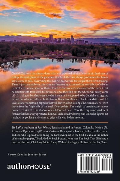 Gabriel Clarkson has always done what was expected of him. Now in his final year of college the next phase of the greatness that his father has always proclaimed for him is set to come to pass. Everything that Gabriel has worked for is right there for the taking. There is just one problem...his vices are threatening to unravel the very fabric of who he is. Still, even worse, some of those closest to him are not even aware of the tumult that he wrestles with from dusk till dawn and once they find out the wheels will surely come off. In trying to be what everyone else is sure he is supposed to be Gabriel is struggling to find out who he really is. In the face of Black Lives Matter, Blue Lives Matter, and All Lives Matter something happens that will leave Gabriel asking if he even matters! Even those from the "right side of the tracks" can go left. The weight of certain expectations hover over him like the shadow of a 40-foot-tall bear. Now, the very same shadow of fortune that has always protected him will undoubtedly destroy him unless he figures out just how he got here and comes to grips with who he has become...