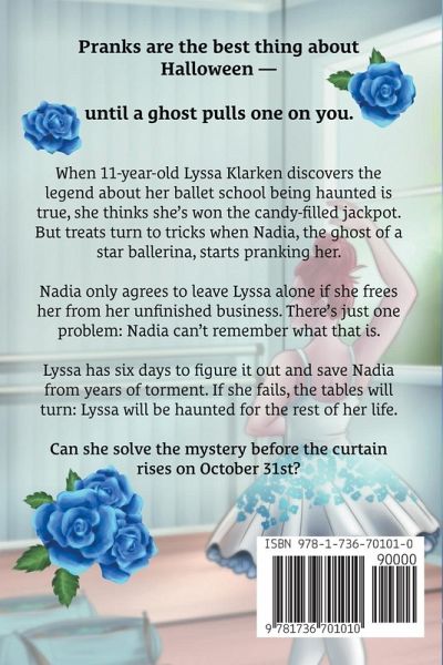 Pranks are the best thing about Halloween - until a ghost pulls one on you. When eleven-year-old Lyssa Klarken discovers the legend about her ballet school being haunted is true, she thinks she's won the candy-filled jackpot. But treats turn to tricks when Nadia, the ghost of a star ballerina, starts pranking her. Nadia only agrees to leave Lyssa alone if she frees her from her unfinished business. There's just one problem: Nadia can't remember what that is. Lyssa has six days to figure it out and save Nadia from torment. If she fails, the tables will turn: Lyssa will be haunted for the rest of her life. Can she solve the mystery before the curtain rises on October 31st?