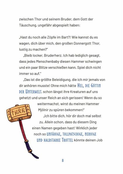 Diese göttliche Schulgeschichte schlägt ein wie ein Blitz!Wenig Text, viele Bilder, unendlich viel Lesespaß!Auf der neuen Schule will Tom endlich zu den Coolen gehören und mit seiner Band den Talentwettbewerb gewinnen! Doch dann wird Tom mitten in der Probe vom Blitz getroffen, und plötzlich faselt eine Stimme ihm zu, dass er von nun an Thor der Donnergott sei. Na klar! Aber als er mit zig Hämmern im Bett aufwacht, ihm über Nacht ein Bart wächst und er Blitzschläge per High Five verteilt, fängt Tom an, die Geschichte zu glauben. Dann taucht auch noch ein Schüler auf, der sich als sein göttlicher Bruder Loki vorstellt. Er will Tom helfen, seine Kräfte in den Griff zu bekommen, sonst kann der sein Pausenbrot bald ganz allein auf dem Schulklo essen ... Aber ob Loki mit offenen Karten spielt? - Mit vielen bunten Bildern und lustigen Comics von Timo Grubing- Cooles Extra: Ein Aufsteller der göttlichen Band zum Heraustrennen in der 1. Auflage