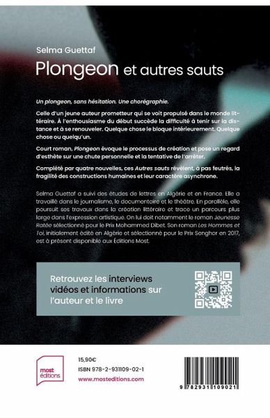 Un plongeon, sans hésitation. Une chorégraphie. Celle d'un jeune auteur prometteur qui se voit propulsé dans le monde littéraire. À l'enthousiasme du début succède la difficulté à tenir la distance et à se renouveler. Quelque chose le bloque intérieurement. Quelque chose ou quelqu'un. Court roman, Plongeon évoque le processus de création et pose un regard d'esthète sur une chute personnelle et la tentative de l'arrêter. Complété par quatre nouvelles, ces Autre sauts révèlent, à pas feutrés, la fragilité des constructions humaines et leur caractère asynchrone.