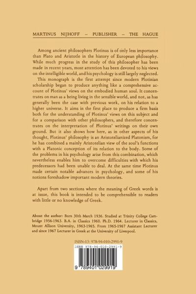 This book is a revised version, with some omissions, of a Cambridge doctoral dissertation submitted in 1963: I fear that it still bears marks of its origins. The dissertation itself was the result of an earlier scheme to identify the sources of Plotinus' psychological doctrines. In the course of this work it soon became evident that it was not sufficient1y clear what these doctrines were. Students of Plotinus have tended to concentrate on the higher regions of his world, and there is still no satisfactory treatment of his doctrines of the embodied soul. It is the purpose of this book to provide a fairly extensive survey of these doctrines. It does not claim to be exhaustive. Nor does it claim to add a large body of new knowledge, since over so wide a field many points have been touched on by others, if only in passing. But I hope that it may remove some misconceptions, and bring the details of Plotinus' theories into sharper focus. It had been my intention to add an introduction - mainly for the benefit of non-specialist readers - on the psychology of Plotinus' predecessors. In the meantime the Cambridge History of Later Greek and Early Medieval Philosophy has appeared, and the reader who wants information on this subject may convenient1y be referred to the relevant parts of the late Professor Merlan's chapters on the predeces sors of Plotinus.