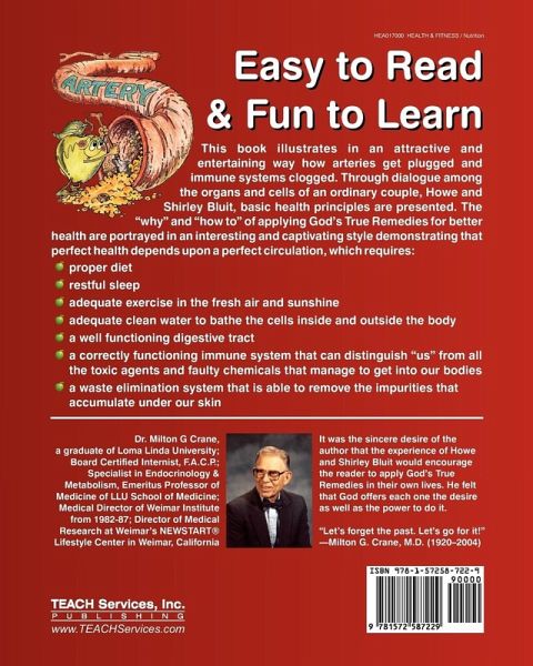 This book illustrates in an attractive and entertaining way how arteries get plugged and immune systems clogged. Through dialogue among the organs and cells of an ordinary couple, Howe and Shirley Bluit, basic health principles are presented including the "why" and "how to" of applying God's true remedies for better health. Black and white illustrations. About the Author Dr. Milton G. Crane, a graduate of Loma Linda University, is a Board Certified Internist, F.A.C.P., Specialist in Endocrinology & Metabolism, emeritus professor of Medicine of LLU School of Medicine, and was medical director of Weimar Institute from 1982-87. He is currently the director of medical research of Weimar's NEWSTART Lifestyle Center in Weimar, California. He is also author of A Modern Subtle Challenge to God's Authority and Preparation for Translation.