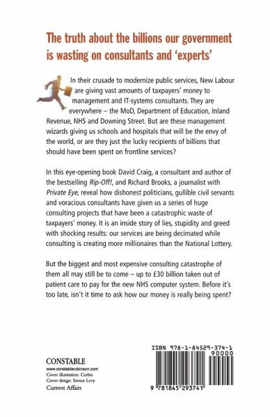In their crusade to modernise public services, New Labour are giving vast amounts of taxpayers' money to management and IT systems consultants. They are everywhere - the Inland Revenue, MoD, Education Department, NHS and Downing Street. But are these management wizards giving us schools and hospitals that will be the envy of the world, or are they just siphoning off billions that should have been spent on the frontline services? And the biggest and most expensive consulting catastrophe of them all may still be yet to come - up to GBP 30 billion taken out of patient care to pay for the new NHS computer system. Isn't it time to ask how our money is really being spent?