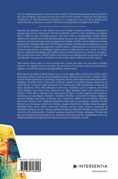 It presents comparative perspectives based on findings presented in National Reports on the theme 'Plurality and Diversity in Law: Family Forms and Family's Functions'. The contributions focus on whether, and if so, how, family law recognises that a child can have multiple parents, and which family functions are recognised and favoured by the law.