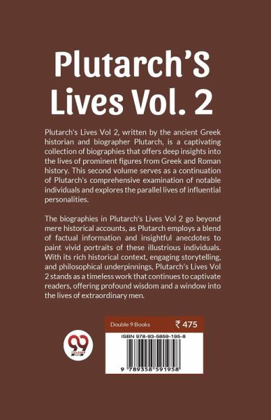 Plutarch's Lives Vol 2, written by the ancient Greek historian and biographer Plutarch, is a captivating collection of biographies that offers deep insights into the lives of prominent figures from Greek and Roman history. This second volume serves as a continuation of Plutarch's comprehensive examination of notable individuals and explores the parallel lives of influential personalities. The biographies in Plutarch's Lives Vol 2 go beyond mere historical accounts, as Plutarch employs a blend of factual information and insightful anecdotes to paint vivid portraits of these illustrious individuals. With its rich historical context, engaging storytelling, and philosophical underpinnings, Plutarch's Lives Vol 2 stands as a timeless work that continues to captivate readers, offering profound wisdom and a window into the lives of extraordinary men.