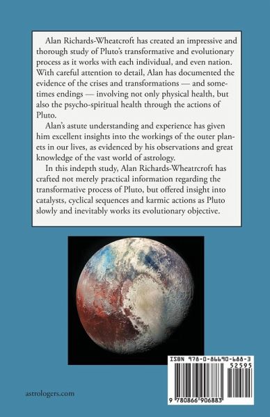 Alan Richards-Wheatcroft has created an impressive and thorough study of Pluto's transformative and evolutionary process as it works with each individual, and even nation. With careful attention to detail, Alan has documented the evidence of the crises and transformations - and sometimes endings - involving not only physical health, but also the psycho-spiritual health through the actions of Pluto. Alan's astute understanding and experience has given him excellent insights into the workings of the outer planets in our lives, as evidenced by his observations and great knowledge of the vast world of astrology. In this indepth study, Alan Richards-Wheatrcroft has crafted not merely practical information regarding the transformative process of Pluto, but offered insight into catalysts, cyclical sequences and karmic actions as Pluto slowly and inevitably works its evolutionary objective.