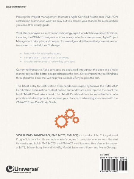 "Revised Version 2016. Passing the Project Management Institute's Agile Certified Practitioner (PMI-ACP) certification examination won't be easy, but you'll boost your chances for success when you consult this study guide. Vivek Vaishampayan, an information technology expert who holds several certifications, including the PMI-ACP designation, introduces you to the exam process, Agile Project Management principles, and dozens of knowledge and skill areas that you must master to succeed in the field. You'll also get: handy tips for taking the exam; sample exam questions with answers; chapter summaries to review key concepts. Current references to Agile concepts are explained throughout the book in a simple manner so you'll be better equipped to pass the test. Just as important, you'll find tips throughout the book that will help you succeed after you pass the test. This latest entry to Certification Prep handbooks explicitly follows the PMI's ACP Certification Examination content outline and addresses each topic to the exact the level PMI-ACP test takers need. The PMI-ACP certification is an important facet of a practitioner's development, so improve your chances of advancing your career with the PMI-ACP Exam Prep Study Guide."