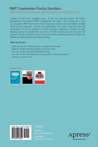 Study for the Project Management Professional (PMP®) Examination with this essential aid in your study program. It contains over 400 realistic multiple choice practice questions, answers, and explanations. PMP® Examination Practice Questions is organized into two useful parts. The first comprises all the questions, organized in chapters by topic, allowing you to simulate the actual test. The second part not only gives the answers, but also comments on the incorrect answers, providing additional insight and helping you formulate your test-taking strategy. What You'll Learn See Q&As to over…mehr