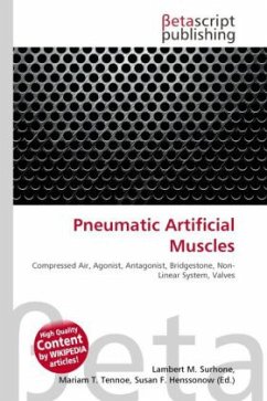 High Quality Content by WIKIPEDIA articles! Pneumatic artificial muscles (PAMs) are contractile or extensional devices operated by pressurized air. Similarly to human muscles, PAMs are usually grouped in pairs (see figure): one agonist and one antagonist. PAMs were first developed (under the name of McKibben Artificial Muscles) in the 1950s for use in artificial limbs. The Bridgestone rubber company (Japan) commercialized the idea in the 1980s under the name of Rubbertuators. The retraction strength of the PAM is limited by the sum total strength of individual fibers in the woven shell. The exertion distance is limited by the tightness of the weave; a very loose weave allows greater bulging, which further twists individual fibers in the weave. Examples of complex configurations of Air Muscles are used in the Shadow Dexterous Hand. PAMs are very lightweight because their main element is a thin membrane.