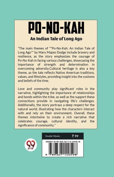 The main themes of ""Po-No-Kah: An Indian Tale of Long Ago"" by Mary Mapes Dodge include bravery and resilience, as the story emphasizes the courage of Po-No-Kah in facing various challenges, showcasing the importance of strength and determination in overcoming adversity. Cultural heritage is also a key theme, as the tale reflects Native American traditions, values, and lifestyles, providing insight into the customs and beliefs of the time. Love and community play significant roles in the narrative, highlighting the importance of relationships and bonds within the tribe, as well as the support…mehr