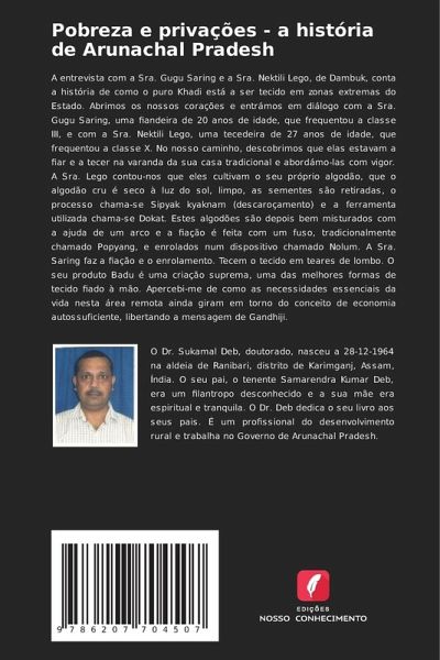 A entrevista com a Sra. Gugu Saring e a Sra. Nektili Lego, de Dambuk, conta a história de como o puro Khadi está a ser tecido em zonas extremas do Estado. Abrimos os nossos corações e entrámos em diálogo com a Sra. Gugu Saring, uma fiandeira de 20 anos de idade, que frequentou a classe III, e com a Sra. Nektili Lego, uma tecedeira de 27 anos de idade, que frequentou a classe X. No nosso caminho, descobrimos que elas estavam a fiar e a tecer na varanda da sua casa tradicional e abordámo-las com vigor. A Sra. Lego contou-nos que eles cultivam o seu próprio algodão, que o algodão cru é seco à luz do sol, limpo, as sementes são retiradas, o processo chama-se Sipyak kyaknam (descaroçamento) e a ferramenta utilizada chama-se Dokat. Estes algodões são depois bem misturados com a ajuda de um arco e a fiação é feita com um fuso, tradicionalmente chamado Popyang, e enrolados num dispositivo chamado Nolum. A Sra. Saring faz a fiação e o enrolamento. Tecem o tecido em teares de lombo. O seu produto Badu é uma criação suprema, uma das melhores formas de tecido fiado à mão. Apercebi-me de como as necessidades essenciais da vida nesta área remota ainda giram em torno do conceito de economia autossuficiente, libertando a mensagem de Gandhiji.