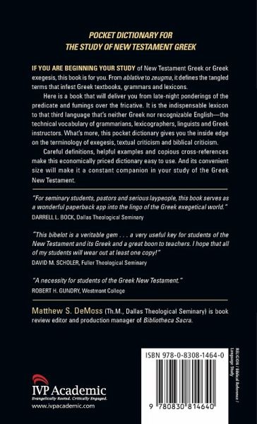 From ablative to zeugma, Matthew S. DeMoss offers an indispensable guide for the study of New Testament Greek or Greek exegesis.