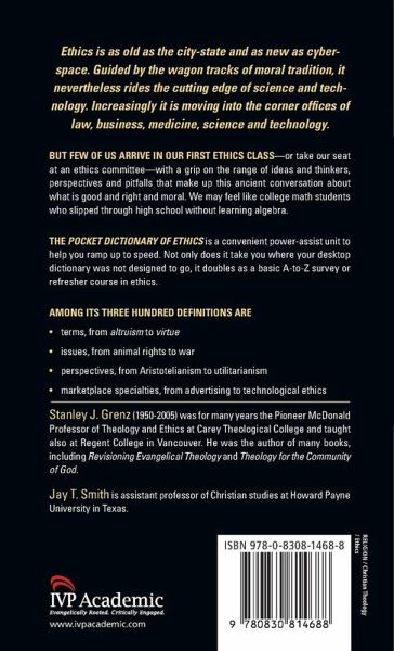 Stanley J. Grenz and Jay T. Smith define more than 300 terms related to Christian ethics, including ideas, issues, positions, thinkers, schools and specialties.
