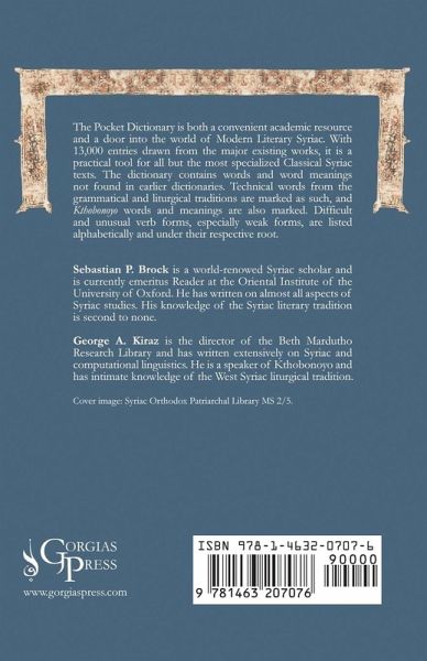 The Pocket Dictionary is both a convenient academic resource and a door into the world of Modern Literary Syriac. With 13,000 entries drawn from the major existing works, it is a practical tool for all but the most specialized Classical Syriac texts.