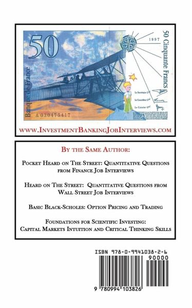 THIS IS A MUST READ! This pocket edition contains a careful selection of 20 brain teasers, 30 thinking questions, and over 100 non-quantitative questions, collected from actual job interviews in investment banking, investment management, and options trading. The interviewers use the same questions year-after-year, and here they are. The brain teasers and more than half the thinking questions are presented with detailed solutions. Note that there is also a complementary pocket edition available of quantitative questions with detailed answers taken from the same interviews (ISBN 978-0-9941-38-1-9). The questions in these pocket editions are a careful selection taken from the full sized edition of Heard on The Street: Quantitative Questions from Wall Street Job Interviews (i.e., this pocket-sized book contains a subset of the content of the larger book; so, don't buy both). The full size edition is the first and the original book of quantitative questions from finance job interviews. It has been painstakingly revised over 18 years and 14 editions, and has been shaped by feedback from many hundreds of readers. With over 50,000 copies in print, its readership is unmatched by any competing book.This pocket edition contains a revised section on interview technique based on Dr. Crack's experiences interviewing candidates and also based on feedback from interviewers worldwide. The questions come from all types of interviews (corporate finance, sales and trading, quant research, etc.), and from all levels of interviews (undergraduate, MS, MBA, PhD). Dr. Crack has a PhD from MIT. He has won many teaching awards, and has publications in the top academic, practitioner, and teaching journals in finance. He has degrees/diplomas in Mathematics/Statistics, Finance, Financial Economics and Accounting/Finance. Dr. Crack taught at the university level for over 20 years including four years as a front line teaching assistant for MBA students at MIT. He has worked as an independent consultant to the New York Stock Exchange, and his most recent practitioner job was as the head of a quantitative active equity research team at what was the world's largest institutional money manager.Dr. Crack is also the author of Basic Black-Scholes: Option Pricing and Trading, and Foundations for Scientific Investing: Capital Markets Intuition and Critical Thinking Skills.