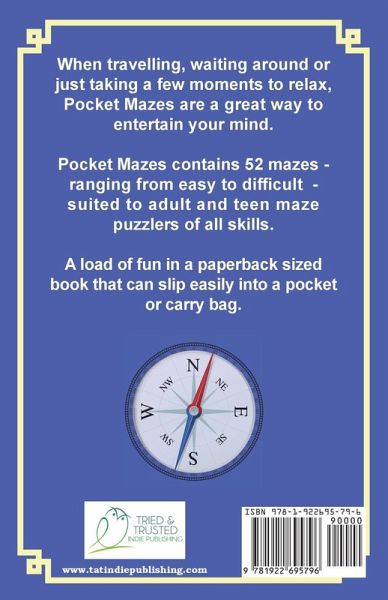 Pocket Mazes are a great way to entertain your mind. Pocket Mazes contains 52 mazes - ranging from easy to difficult - suited to adult and teen maze puzzlers of all skills. A load of fun in a paperback sized book that can slip easily into a pocket or carry bag.