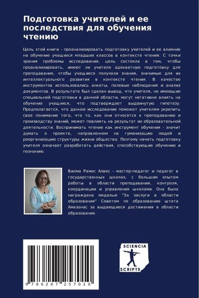 Cel' ätoj knigi - proanalizirowat' podgotowku uchitelej i ee wliqnie na obuchenie uchaschihsq mladshih klassow w kontexte chteniq. S tochki zreniq problemy issledowaniq, cel' sostoqla w tom, chtoby proanalizirowat', imeüt li uchitelq adekwatnuü podgotowku dlq prepodawaniq, chtoby uchaschiesq poluchali znaniq, znachimye dlq ih intellektual'nogo razwitiq w kontexte chteniq. V kachestwe instrumentow ispol'zowalis' ankety, polewye nablüdeniq i analiz dokumentow. V rezul'tate byl sdelan wywod, chto uchitelq, ne imeüschie special'noj podgotowki w dannoj oblasti, mogut negatiwno wliqt' na obuchenie uchaschihsq, chto podtwerzhdaet wydwinutuü gipotezu. Predpolagaetsq, chto dannoe issledowanie pomozhet uchitelqm ukrepit' swoe ponimanie togo, chto to, kak oni otnosqtsq k prepodawaniü i proizwodstwu znanij, mozhet powliqt' na rezul'tat ih obrazowatel'noj deqtel'nosti. Vosprinimat' chtenie kak instrument obucheniq - znachit dumat' o proekte, naprawlennom na gumanizaciü lüdej i reorganizaciü struktury zhizni obschestwa. Poätomu nachat' podgotowku uchitelq oznachaet razrabotat' dejstwiq, sposobstwuüschie obucheniü i poznaniü.