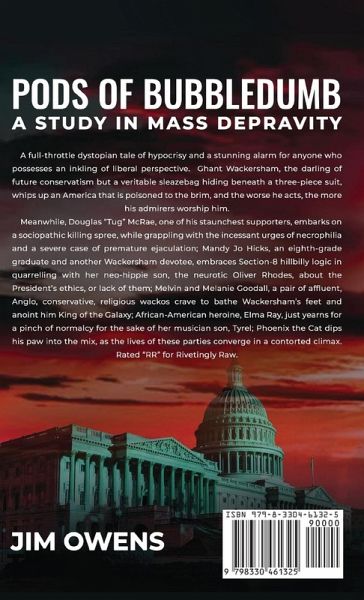 A full-throttle dystopian tale of hypocrisy and a stunning alarm for anyone who possesses an inkling of liberal perspective. Ghant Wackersham, the darling of future conservatism but a veritable sleazebag hiding beneath a three-piece suit, whips up an America that is poisoned to the brim, and the worse he acts, the more his admirers worship him. Meanwhile, Douglas "Tug" McRae, one of his staunchest supporters, embarks on a sociopathic killing spree, while grappling with the incessant urges of necrophilia and a severe case of premature ejaculation; Mandy Jo Hicks, an eighth-grade graduate and another Wackersham devotee, embraces Section-8 hillbilly logic in quarrelling with her neo-hippie son, the neurotic Oliver Rhodes, about the President's ethics, or lack of them; Melvin and Melanie Goodall, a pair of affluent, Anglo, conservative, religious wackos crave to bathe Wackersham's feet and anoint him King of the Galaxy; African-American heroine, Elma Ray, just yearns for a pinch of normalcy for the sake of her musician son, Tyrel; Phoenix the Cat dips his paw into the mix, as the lives of these parties converge in a contorted climax. Rated "RR" for Rivetingly Raw.