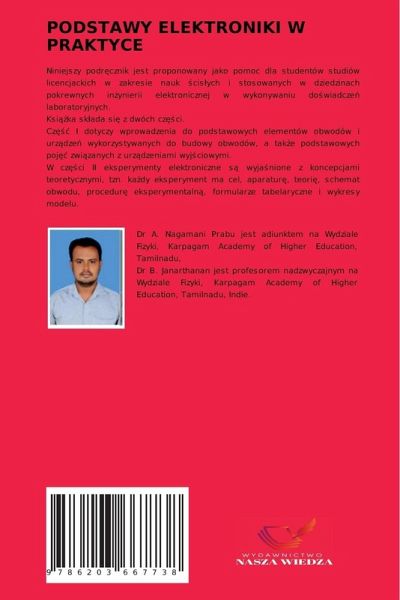 Niniejszy podr¿cznik jest proponowany jako pomoc dla studentów studiów licencjackich w zakresie nauk ¿cis¿ych i stosowanych w dziedzinach pokrewnych in¿ynierii elektronicznej w wykonywaniu do¿wiadcze¿ laboratoryjnych. Ksi¿¿ka sk¿ada si¿ z dwóch cz¿¿ci. Cz¿¿¿ I dotyczy wprowadzenia do podstawowych elementów obwodów i urz¿dze¿ wykorzystywanych do budowy obwodów, a tak¿e podstawowych poj¿¿ zwi¿zanych z urz¿dzeniami wyj¿ciowymi. W cz¿¿ci II eksperymenty elektroniczne s¿ wyjänione z koncepcjami teoretycznymi, tzn. kädy eksperyment ma cel, aparatur¿, teori¿, schemat obwodu, procedur¿ eksperymentaln¿, formularze tabelaryczne i wykresy modelu.